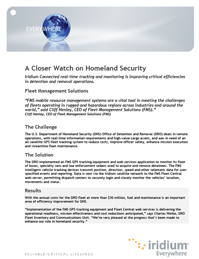 Iridium and its partners deliver remote surveillance, detection and alerting solutions to help you make informed decisions. Monitor and manage assets, preserve coastal security, reduce impact of transportation, recreation and natural disasters, and respond rapidly to any situation when and where the need arises.